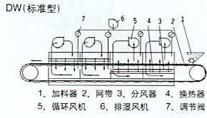 物料由加料器均勻地鋪在網帶上,網帶一般采用12-60目不銹鋼絲網,由傳動裝置拖動在干燥機內移動。干燥機由若干單元組成,每一單元熱風獨立循環(huán),部分尾氣由專門排濕風機排出,廢氣由調節(jié)閥控制,熱氣由下往上或由上往下穿過鋪滿物料的網帶完成熱量與質量傳遞的進程,帶走物料水份。 網帶緩慢移動,運行速度可根據(jù)物料溫度自由調節(jié),干燥后的成品連續(xù)落入收料器中。上下循環(huán)單元根據(jù)用戶需要可靈活配備,單元數(shù)量亦可根據(jù)需要選取。脫水蔬菜、顆粒飼料、味精、椰蓉、有機顏料、合成橡膠、丙稀纖維、藥品、藥材、小木制品、電子無器件老化、固化等。 |